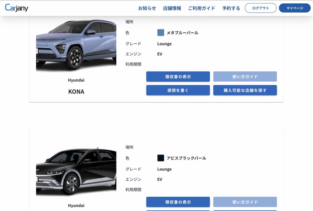 IONIQ5を2回、KONAを1回、合計3回利用しました。