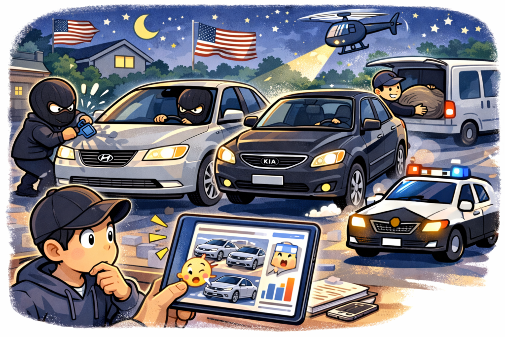 実際、アメリカではヒョンデとKIAの一部車種をめぐって盗難被害の急増が問題になり、シカゴ市が両社を提訴したほか、保険会社の対応や盗難対策ソフトウェアの提供まで発展しました。