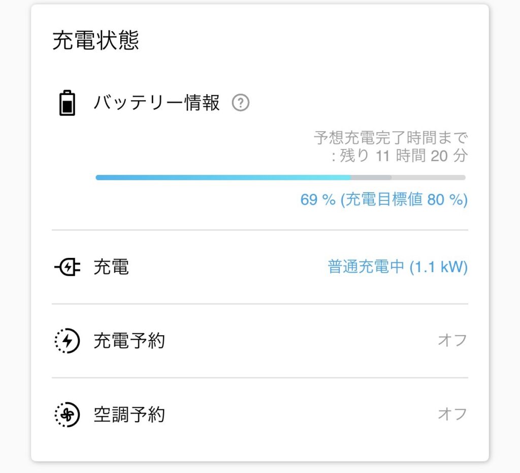 • 表示1.1kWでも、実際にバッテリーに入る電力はそれより少ない(充電ロスあり)