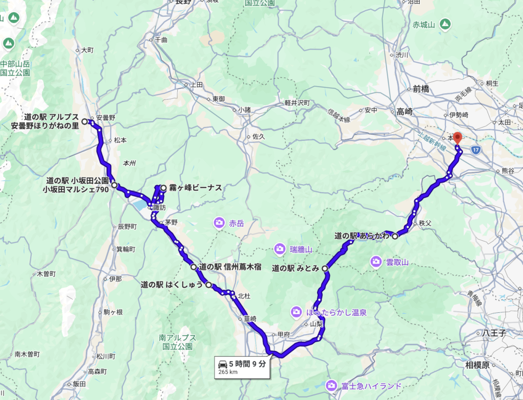「後半は『道の駅 アルプス安曇野ほりがねの里』を出発し、霧ヶ峰ビーナスラインや山梨、そして秩父の山越えルートを通って帰ります。後半のルートだけでも約265km、アップダウンの激しい過酷な道のりです!」