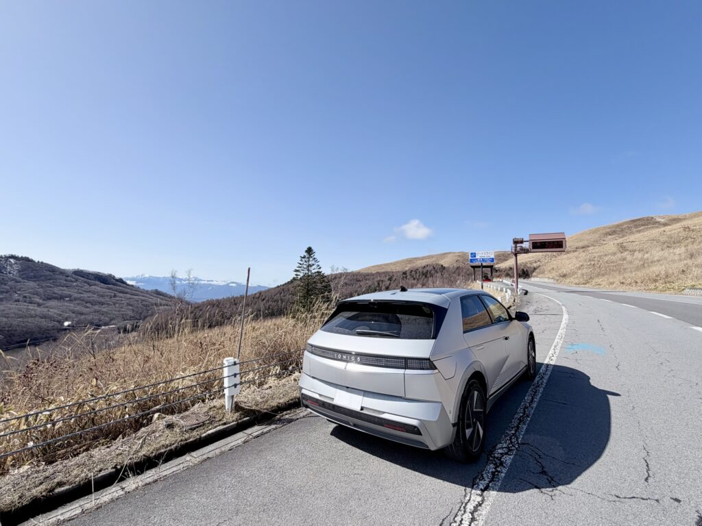 国道20号を経由し、霧ヶ峰高原を目指してビーナスラインを駆け上がります。天気も良く、遠くには雪化粧をした富士山(笑)も見える絶景ドライブですが、EVにとっては非常に過酷な道のりでした。