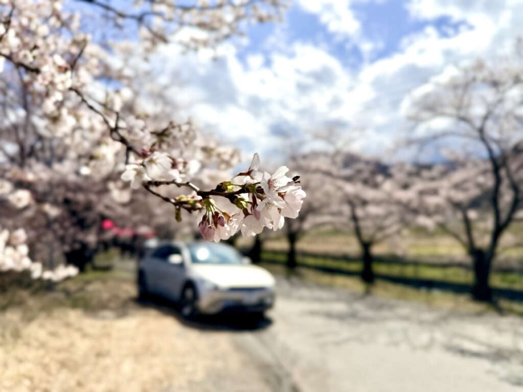 「実は北杜市あたりで綺麗な桜を見かけて、思わず車を停めて15分ほど撮影タイムにしちゃいました。この時、車の電源を入れたまま(システムONの状態で)停車していたんです。」