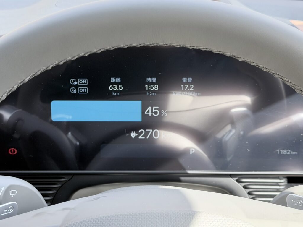 「寄り道も考慮されたリアルな電費なんですね!バッテリーはまだ45%(航続距離270km)も残っているから、車の方は埼玉まで余裕ですね!」