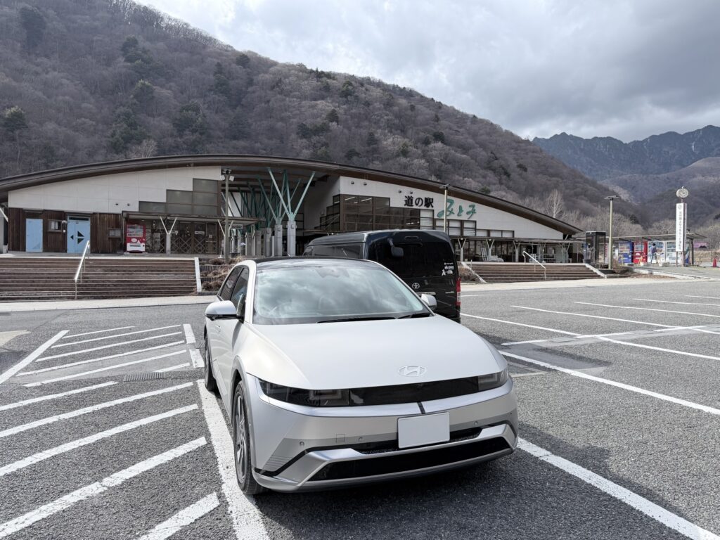 「雁坂(かりさか)トンネルを抜け、山梨県から埼玉県の秩父市(道の駅 あらかわ)へと入りました。約60.7kmの道のりですが……ここで、EVの『本当のすごさ』をお見せします!」