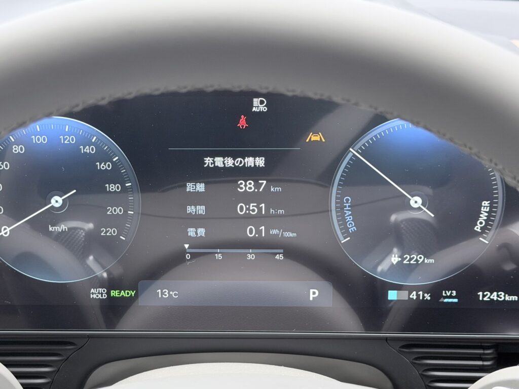 「ギャラリーの3枚目の画像を見てください。途中で撮影したメーターですが、電費が『0.1 kWh/100km』となっていますよね。これはつまり、『電気をほとんど使わずに約40km走った』という証拠なんです。」