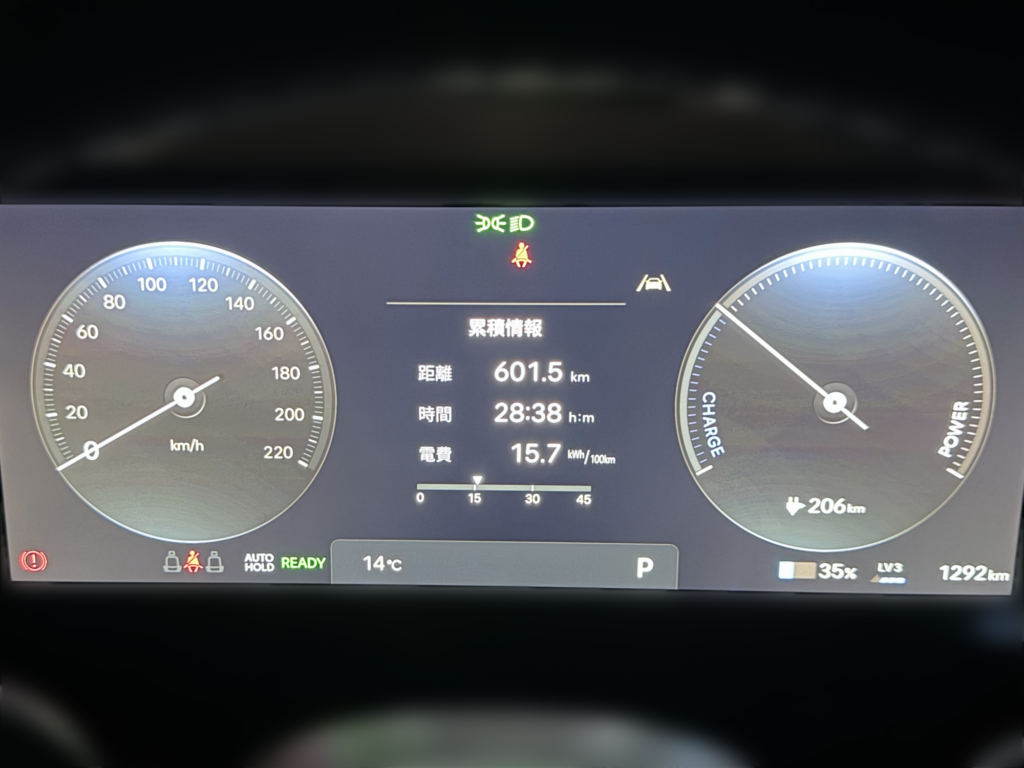 IONIQ5のバッテリーは35%(航続可能距離206km)も残っており、車としてはまだまだ余裕です。 では、乗っていた人間の体力はどうだったかというと……。