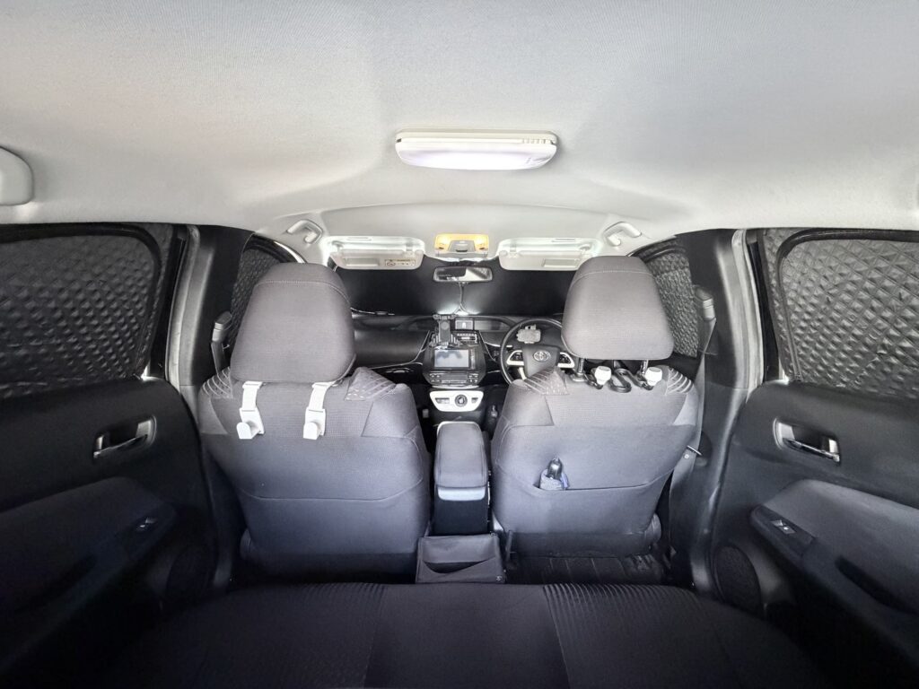 二人乗車で荷物がある場合、シートを倒しても十分なフルフラット空間を確保するのは難しく、リアの天井もそれほど高くありません。身体を伸ばして快適に眠るには、やや窮屈さを感じます。