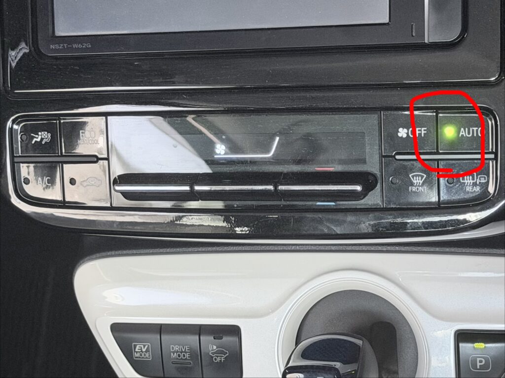 エンジン始動時にAUTOランプは点灯するものの送風が作動せず、各種ボタン操作も受け付けないというものです。およそ2分ほど経過するとAUTOランプが消灯し、操作が可能になり、通常どおりエアコンが作動します。